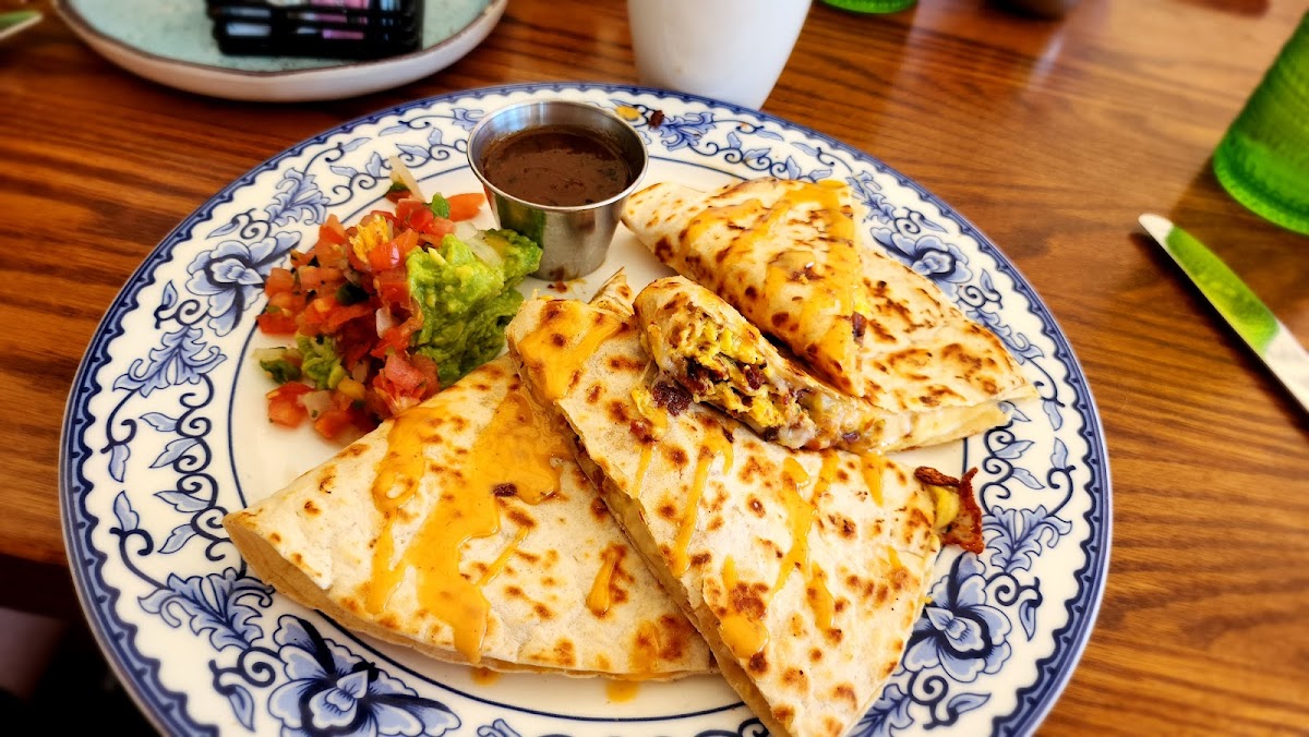 Amazing food right next to the beach. What more can you ask for! The cinnamon pancakes were so good. They taste like Cinnabon pancakes. Then I had the quesadilla. With cheese eggs and bacon in it and guacamole on top.